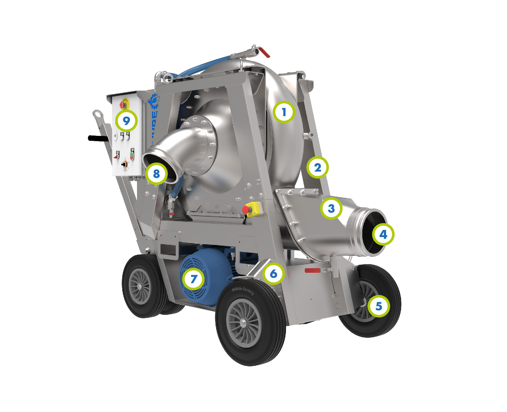 Lowmotion 8 is an 8’’ (⌀ 200mm) industrial pump. Its output allows a wide variety of industrial applications, especially in food industries and wastewater treatment plants.