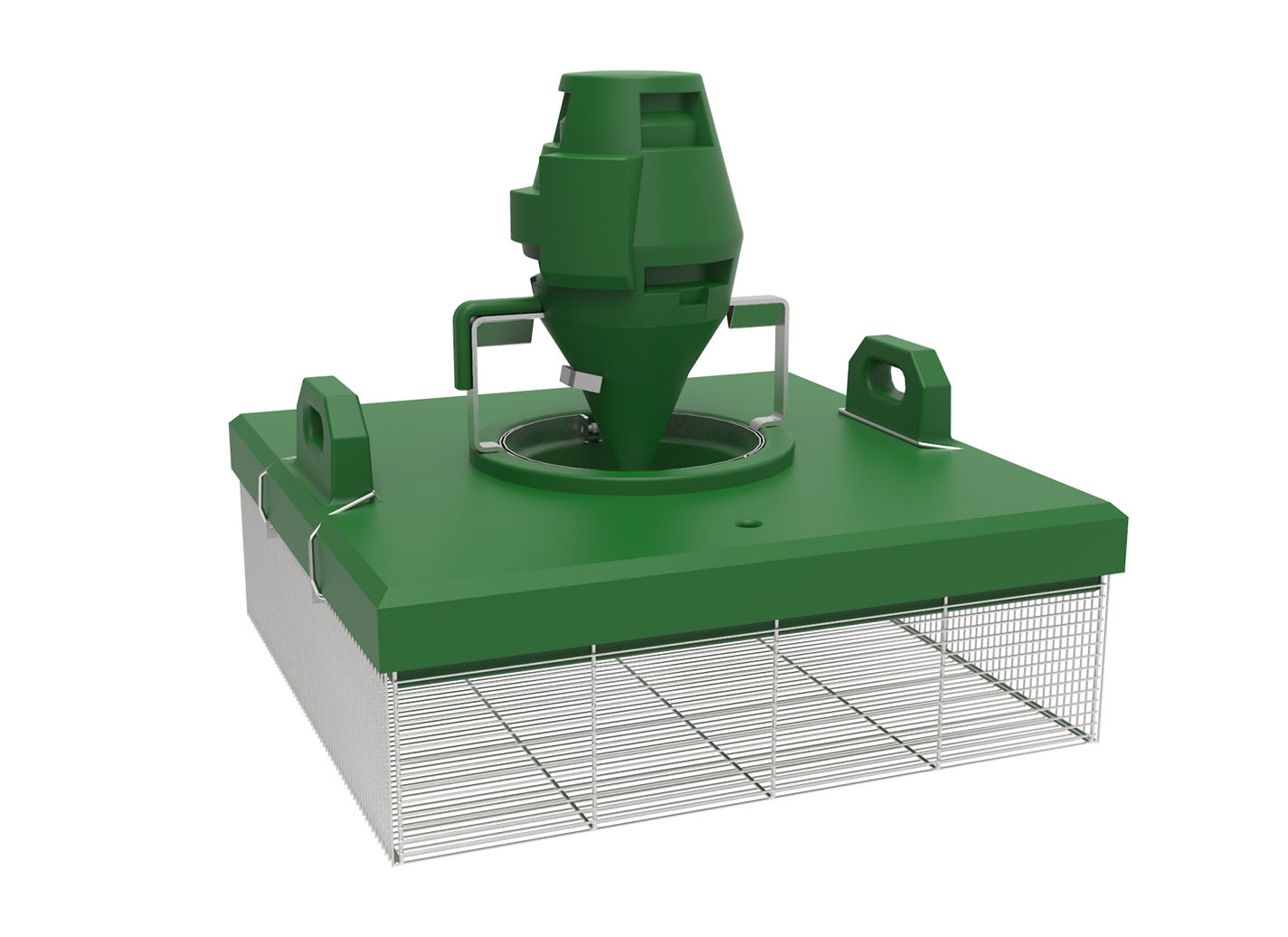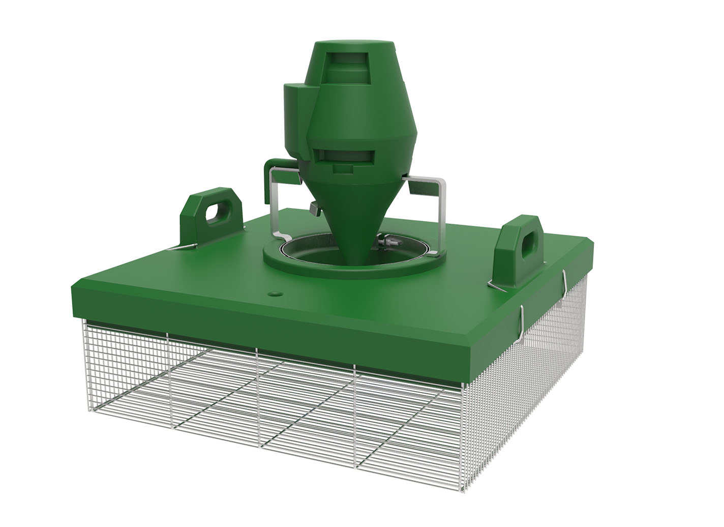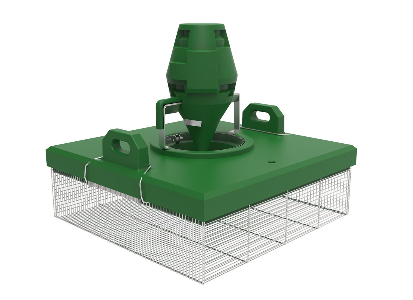 La grille de 5 mm permet de placer l’aérateur dans les bassins de truitelles.