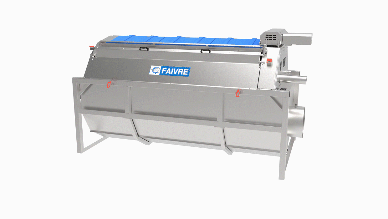 Les filtres à tambour FAIVRE fonctionnent par écoulement gravitaire. Le liquide à filtrer entre dans la machine. Le tambour rotatif va retenir les particules présentes dans les eaux usées grâce aux plaques de filtration qui l’entourent. De ce fait, les matières en suspension plus grosses que la maille des plaques seront piégées à l’intérieur du filtre et seront déversées dans une goulotte d’évacuation des boues.